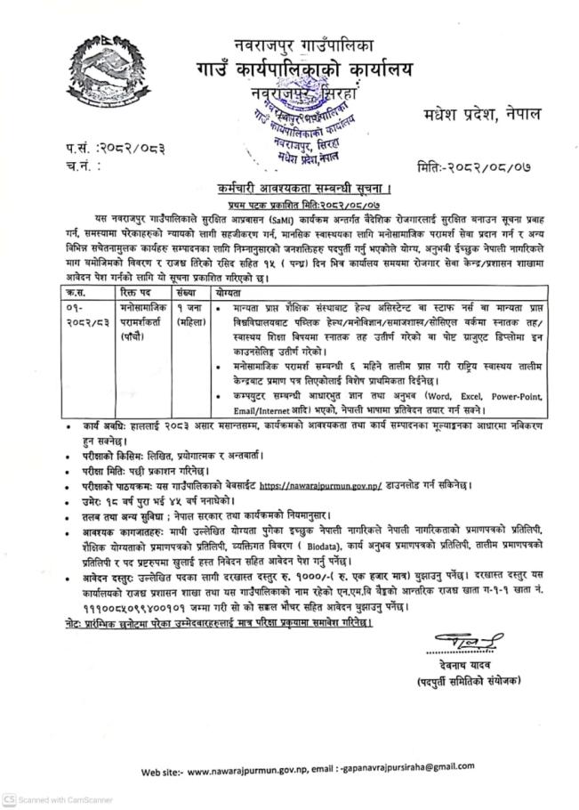आ.व. २०८२/८३ को लागि न्यूनतम रोजगारीमा संलग्न हुन निवेदव दिन सम्बन्धी सूचना।