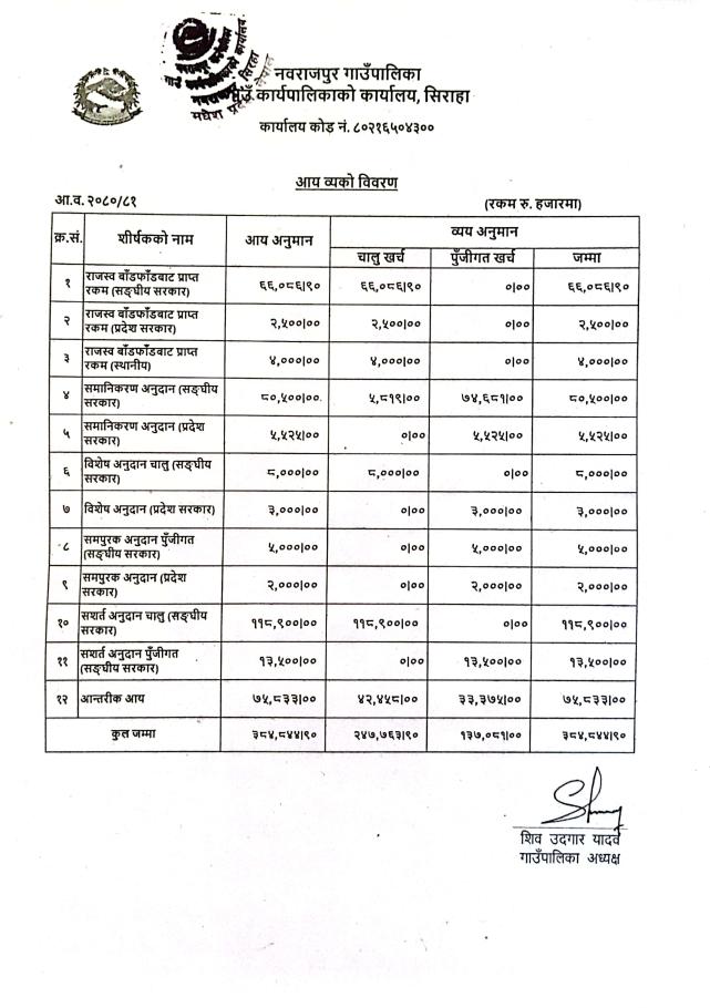 आ.व. २०८०।८१ को आय व्यको विवरण